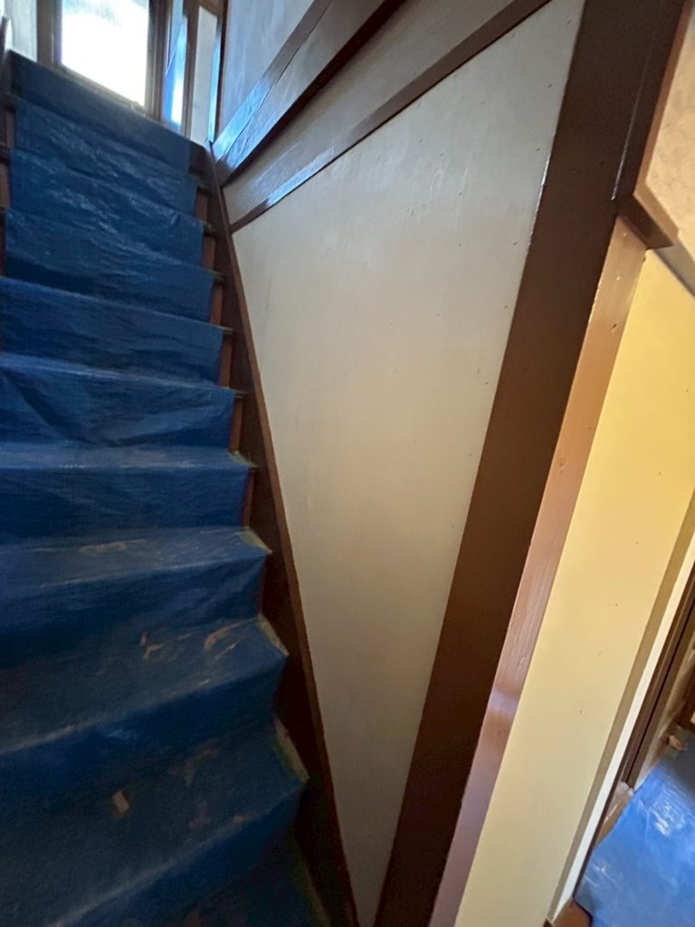 この工程は、内装を新しくするための大切な作業であり、きちんとした下地処理や作業計画が必要です。ベニヤや木下地に凹凸やつなぎ目がある場合は、丁寧な下地処理を行うことで、クロスの貼り付けがスムーズに行えます。