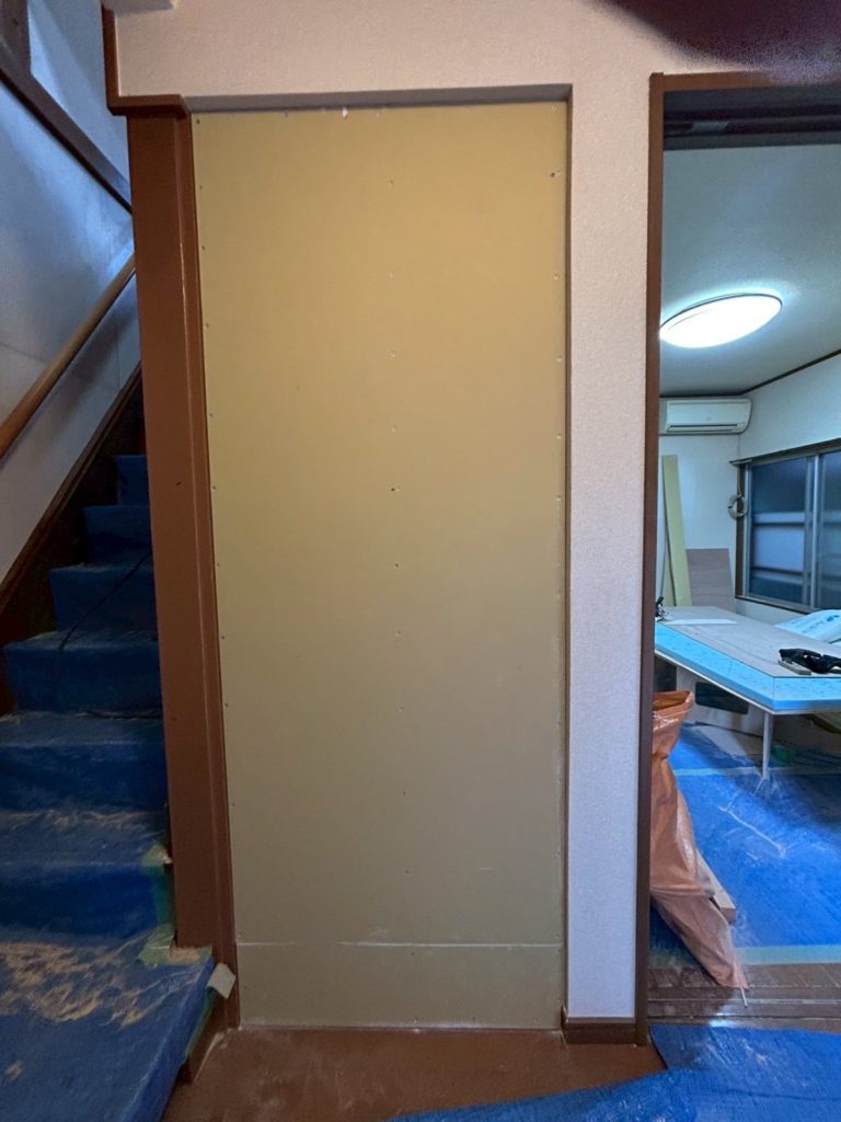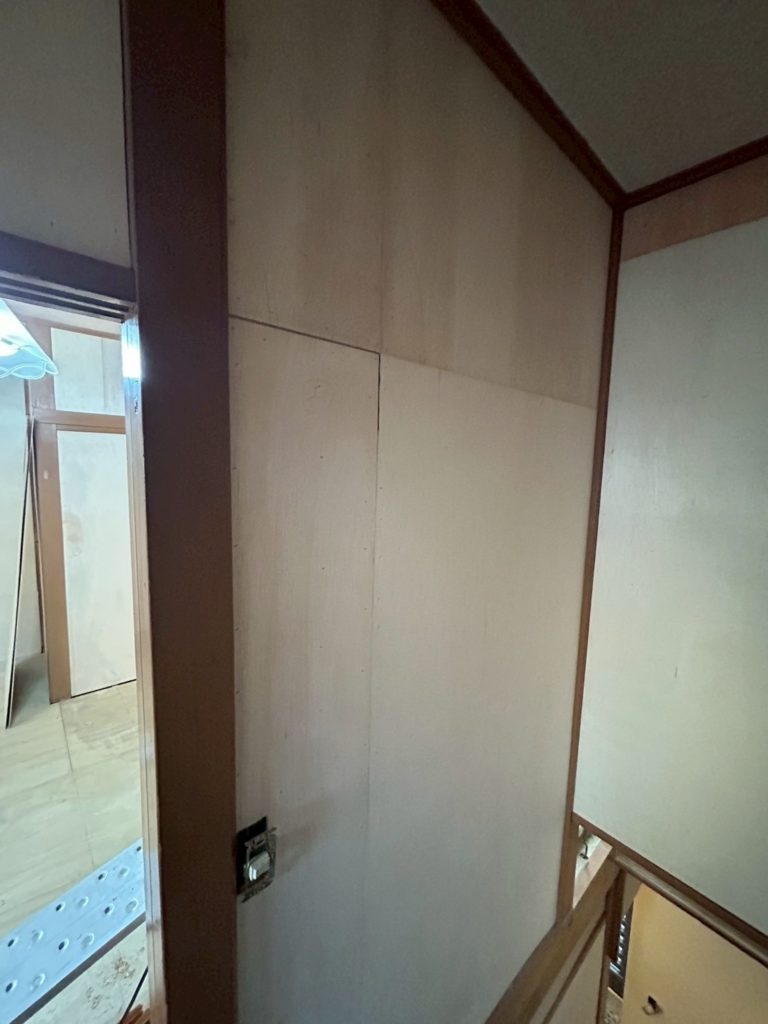 既存下地にベニヤを貼る作業が進行中で、もうすぐ完了の段階にあります。