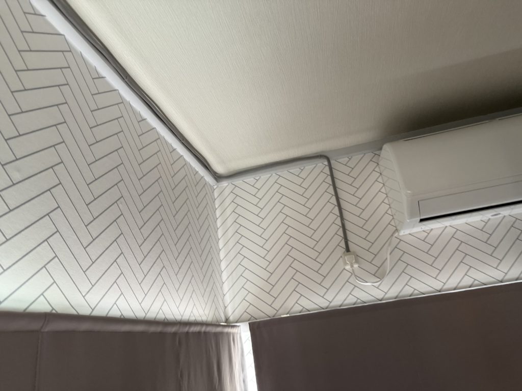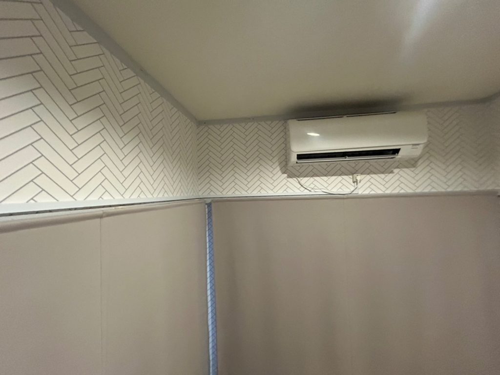 中落合旅館業施設をリフォーム後に購入した際、VFコードを露出させたままエアコン専用幹線を配線するだけで工事が完了していました。