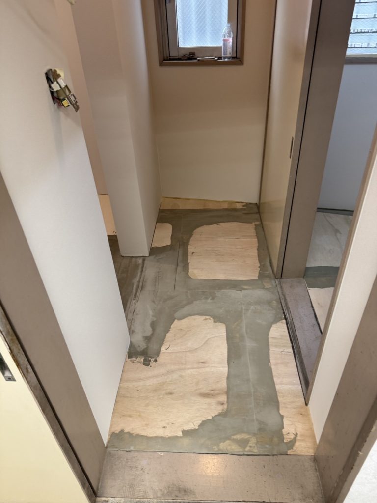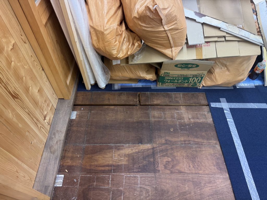 今回の工事では、長尺シート部分の下地補修工事と、一部タイルカーペットの敷詰め工事が行われています。長尺シートは、建物の外壁や屋根などに使用される大型のシートで、風雨などの外部からの影響を受けやすい部分です。そのため、下地補修工事は、シートがしっかりと固定され、劣化や破損が防止されるように行われます。