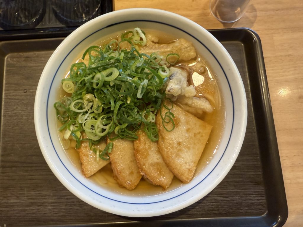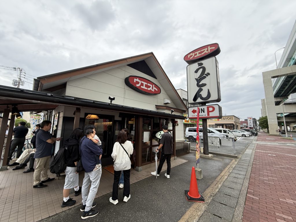 飛行機で福岡空港に到着し、まずは腹ごしらえ。地元で人気の「ウエスト」でうどんランチをいただきました。やさしい出汁と柔らかい麺が旅の疲れを癒やしてくれて、これから始まる家族旅の良いスタートに。