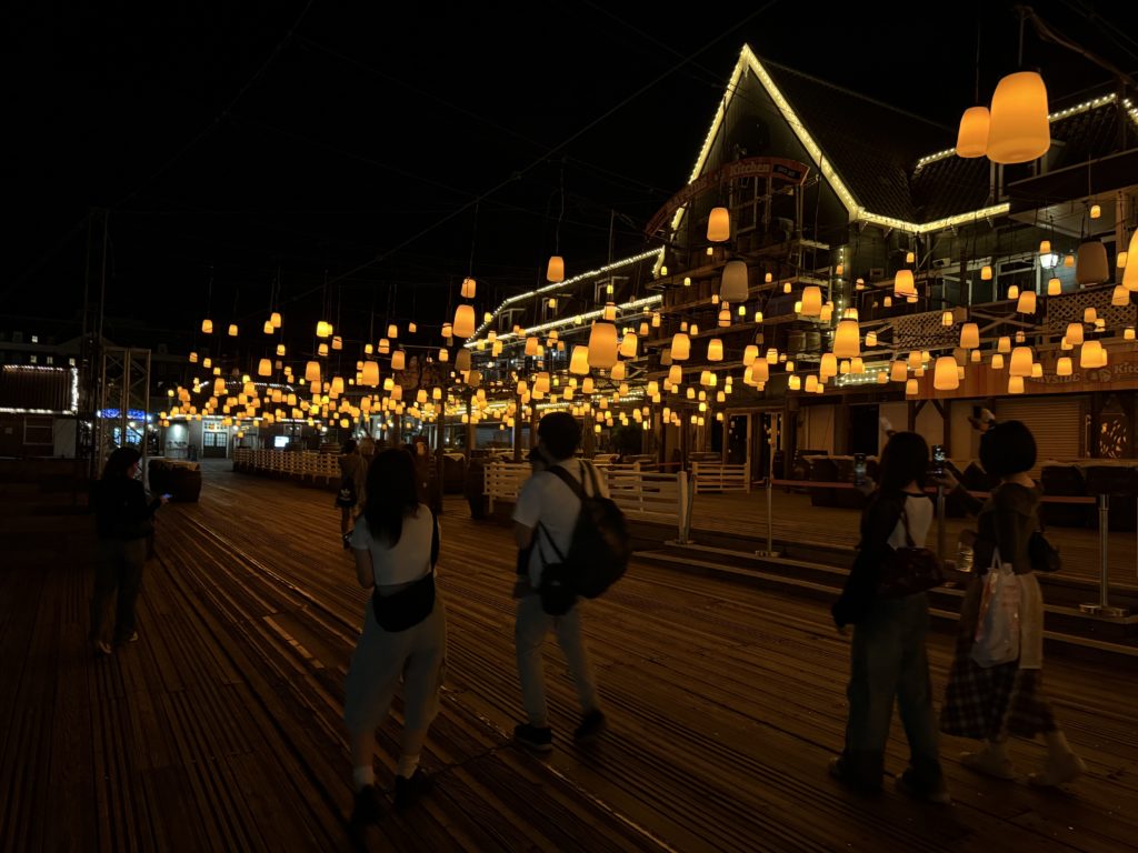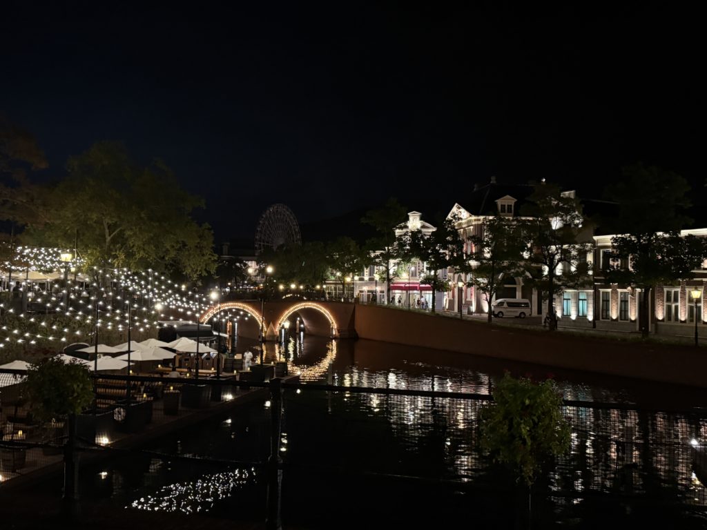 そのまま東京へ戻るにはハードなので、家族でリフレッシュするためにハウステンボスへ移動。夕暮れに差しかかる頃に到着し、ライトアップされた街並みに思わず感動。夜景を眺めながらのホテルチェックインは、旅の疲れを忘れさせてくれました。