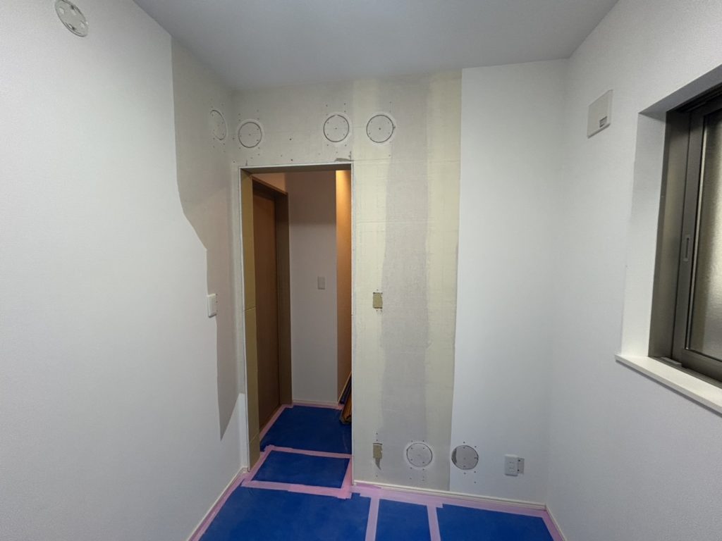 現在は内装仕上げ前の段階となり、クロス貼り工事待ちの状況です。