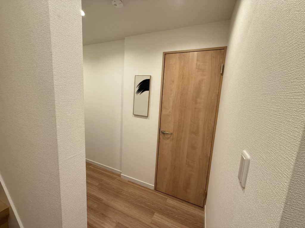1階半地下から2階のキッチンダイニングエリアがオープンになっているため、仕切り壁を設置し、各部屋の建具、トイレ、脱衣場の計7枚を交換しました。