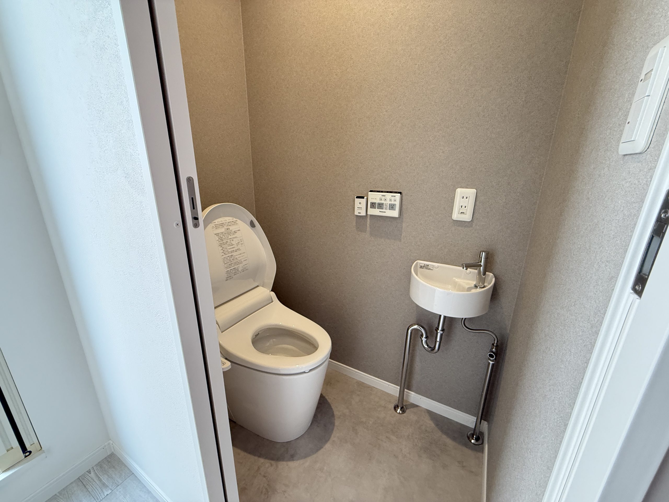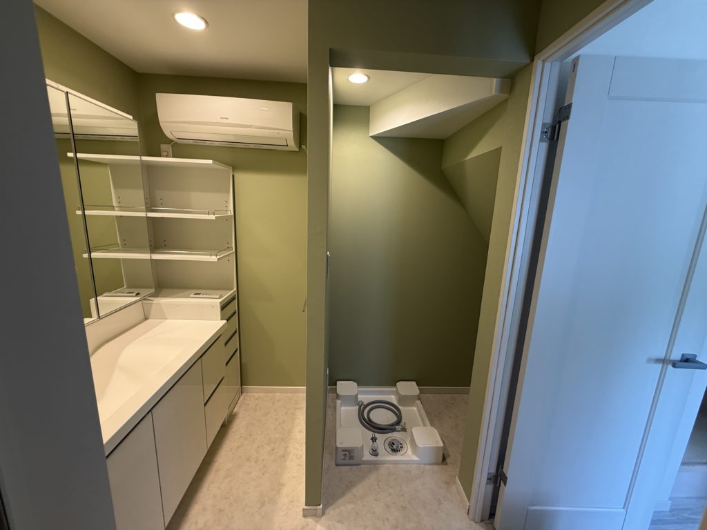 2階に追加のトイレを設置し、洗濯パンを1階に移動させることで問題を解決いたしました。