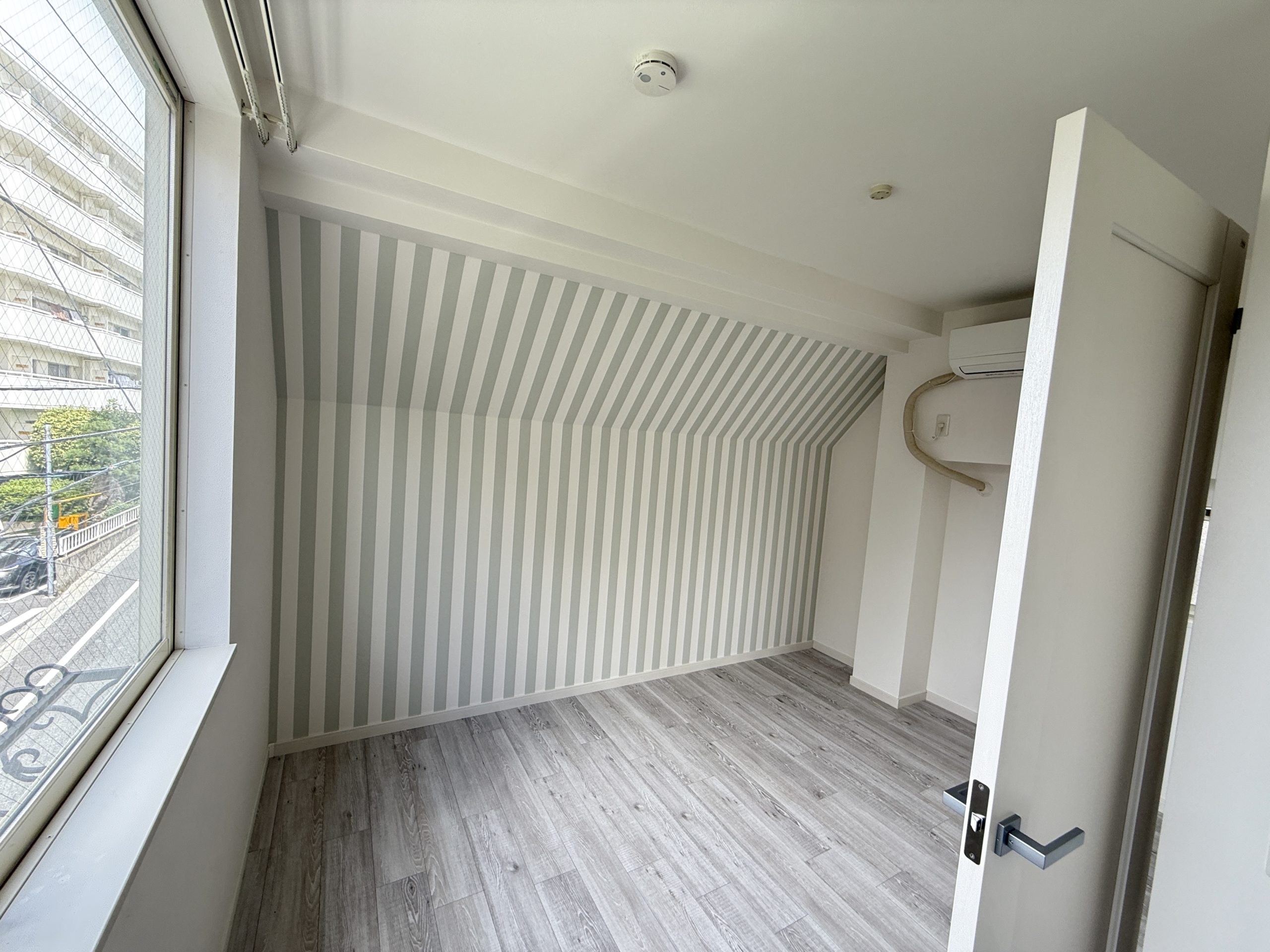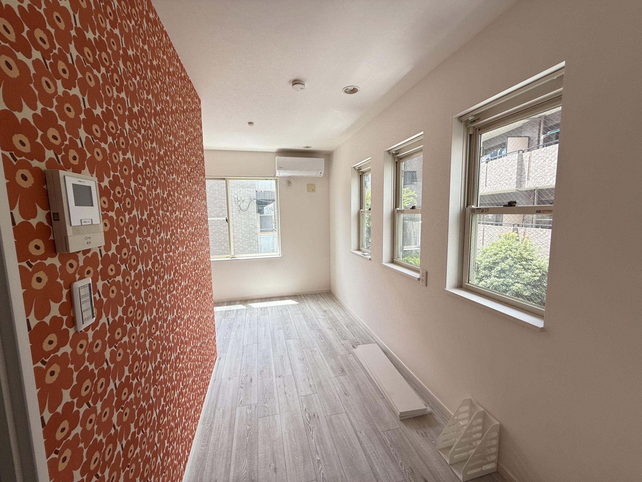 具体的な工事としまして、二階部分には竪穴区画の仕切り壁を設置し、建具も新たに取り付け、クローゼットを撤去いたしました。