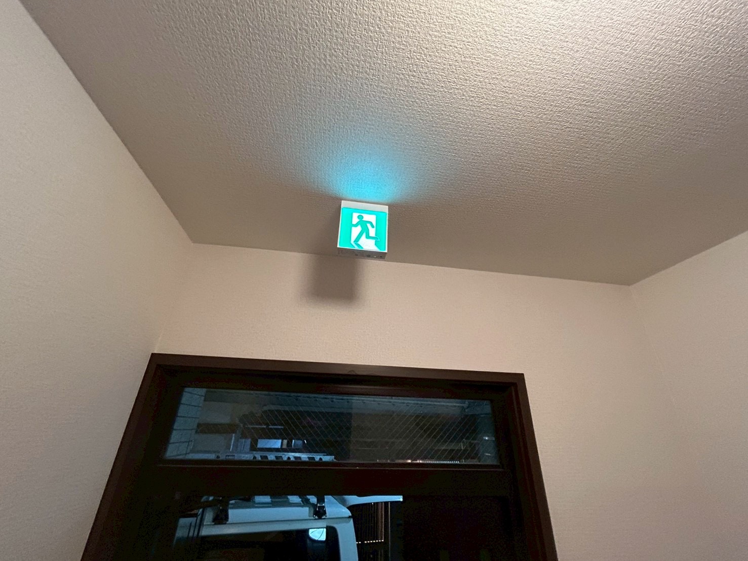ご提案は、2、3階の引き戸建具とランマ付き建具の交換を行いました。また、消防設備の誘導灯と非常用照明を設置する工事も行いました。