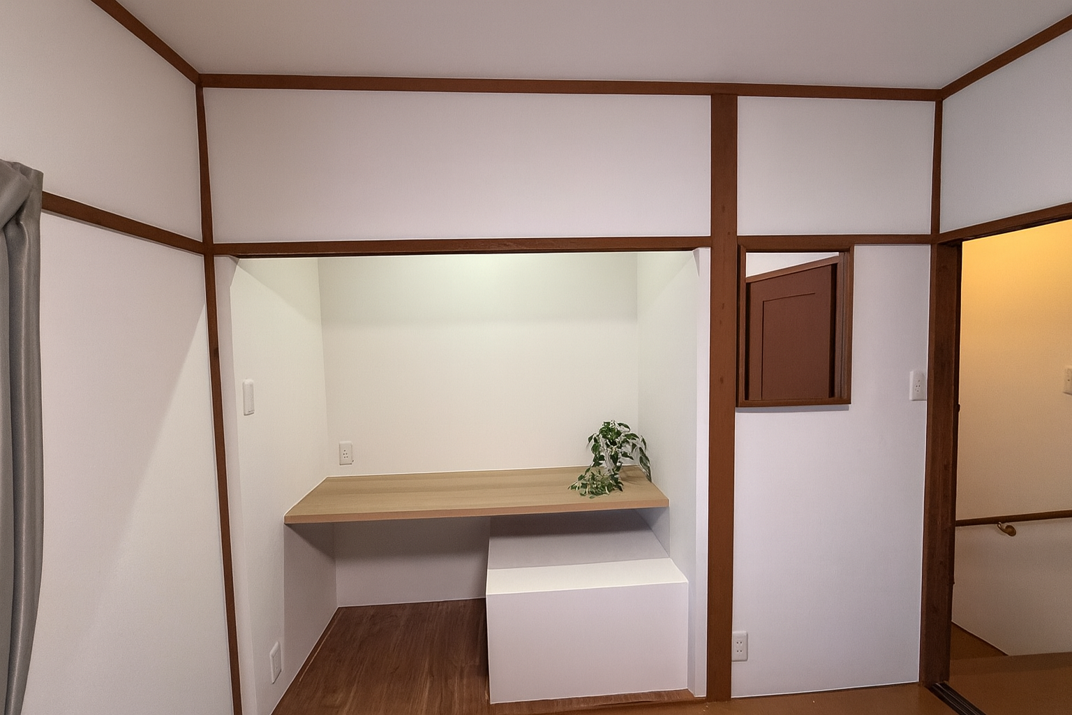 • 2階押入れ:机天端を造作し、Tパイプ取付で収納・作業性を向上