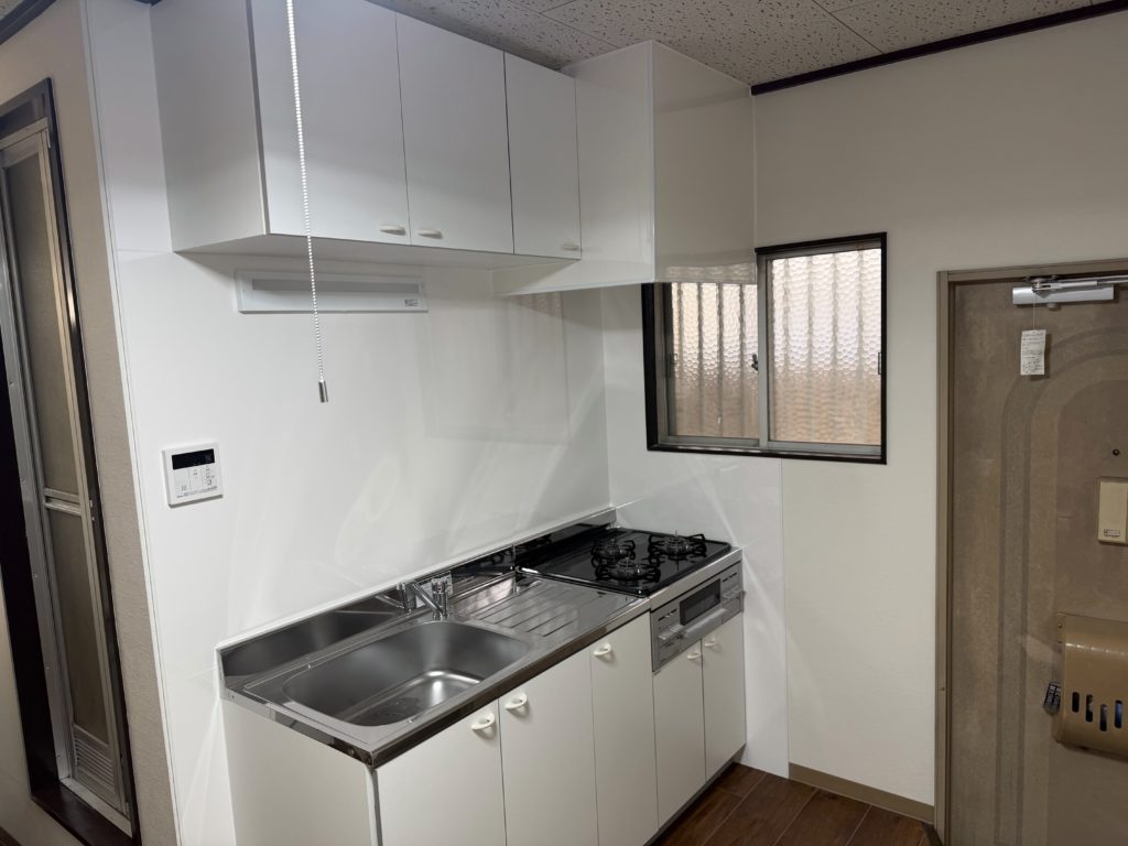 | 施工内容 | 浴槽・バランス釜から給湯器交換 キッチン・トイレ・洗面台・洗濯パン交換 和室から洋室 建具扉交換 |
