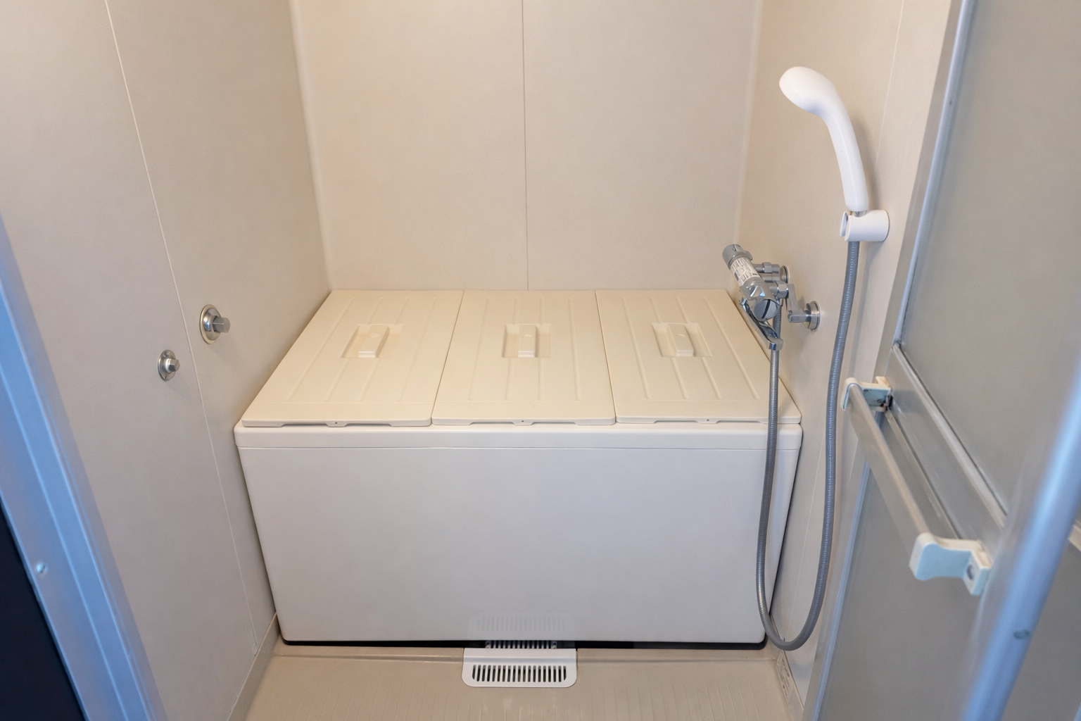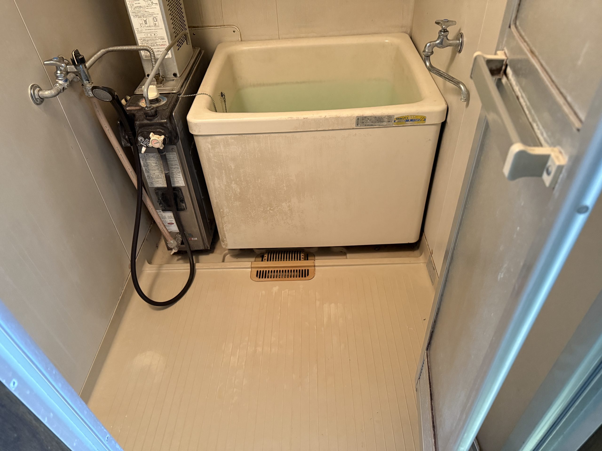 既存設備として設置されていたバランス釜・浴槽・キッチン・換気扇・吊戸棚・トイレ・畳・押入れ・各種建具をすべて解体・撤去し、室内を一度リセットした状態から工事をスタート。給湯設備については、利便性と安全性を考慮し、外部に給湯器を新設いたしました。