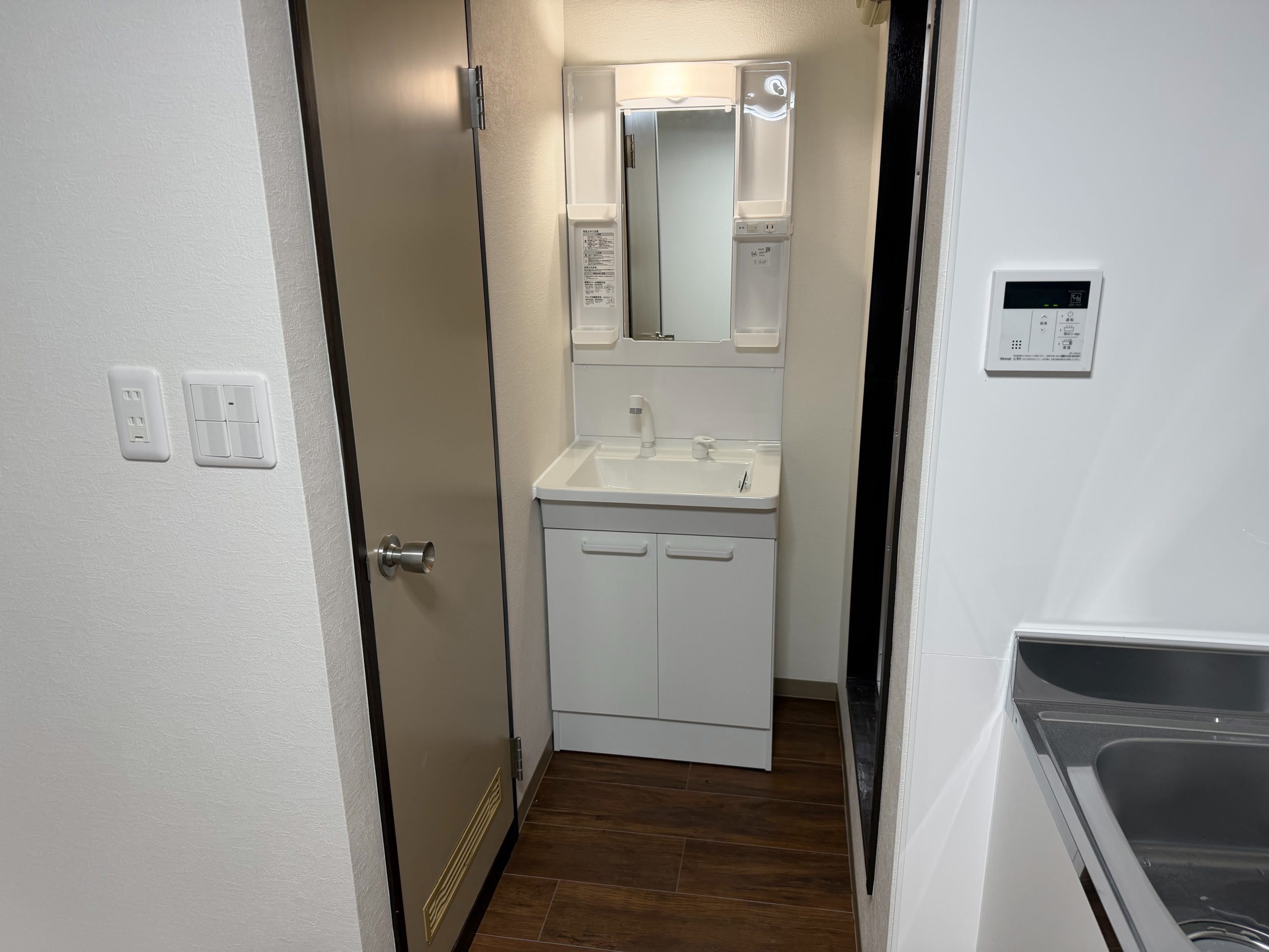 その後、室内は設備・内装ともに全面的に新規入れ替えを実施。水回りでは新たに化粧洗面台を設置し、洗濯パンの位置も見直すことで、より使い勝手の良い動線へ改善しています。
