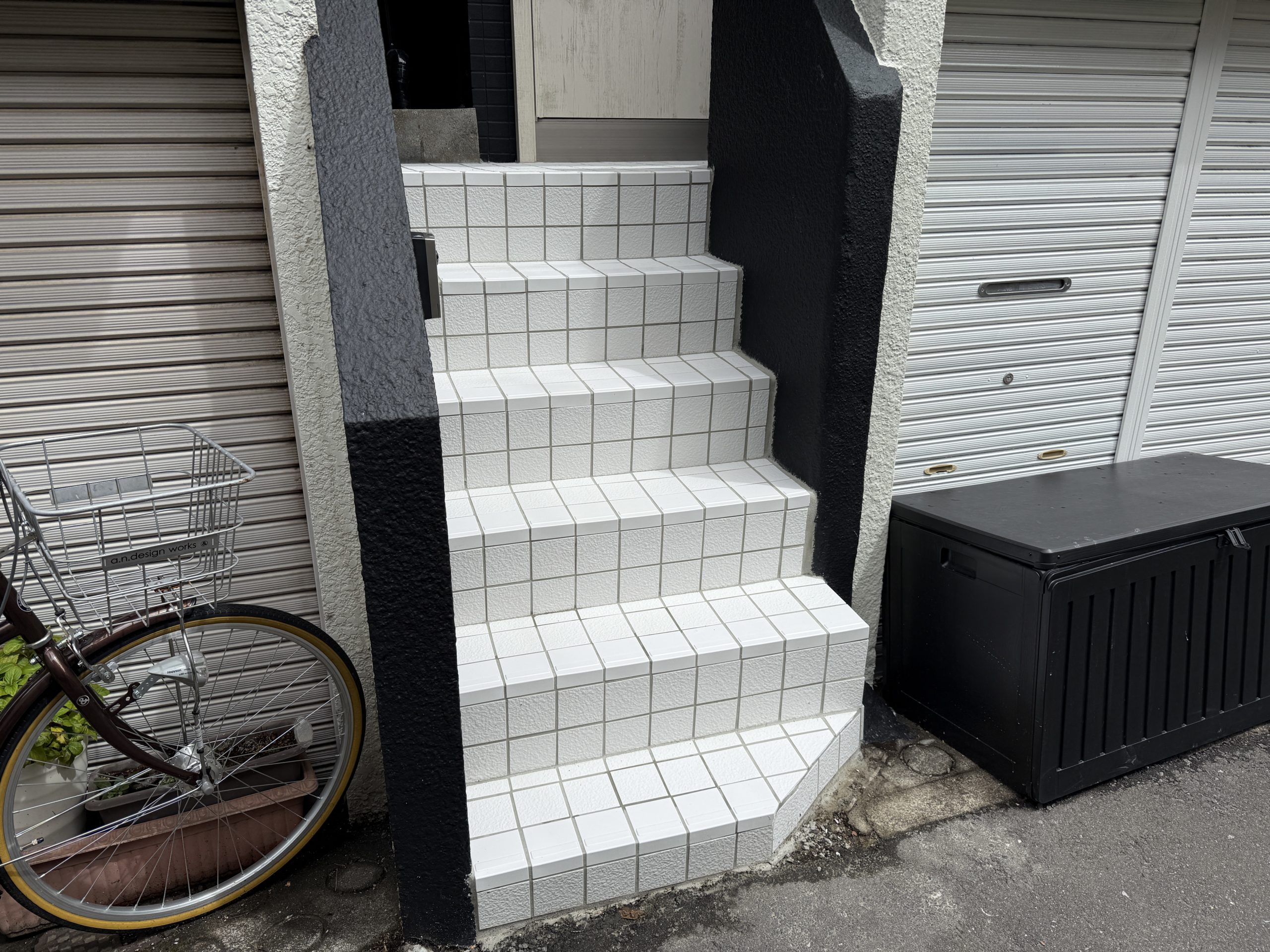 内外装改修リフォームが完了しました。 その際、玄関ドアカバー工法を使用して交換作業を行いましたが、なお、タイルの汚れについて気になる点がございました。 最終的には、新しいタイルを上から重ねて仕上げることにより解決いたしました。