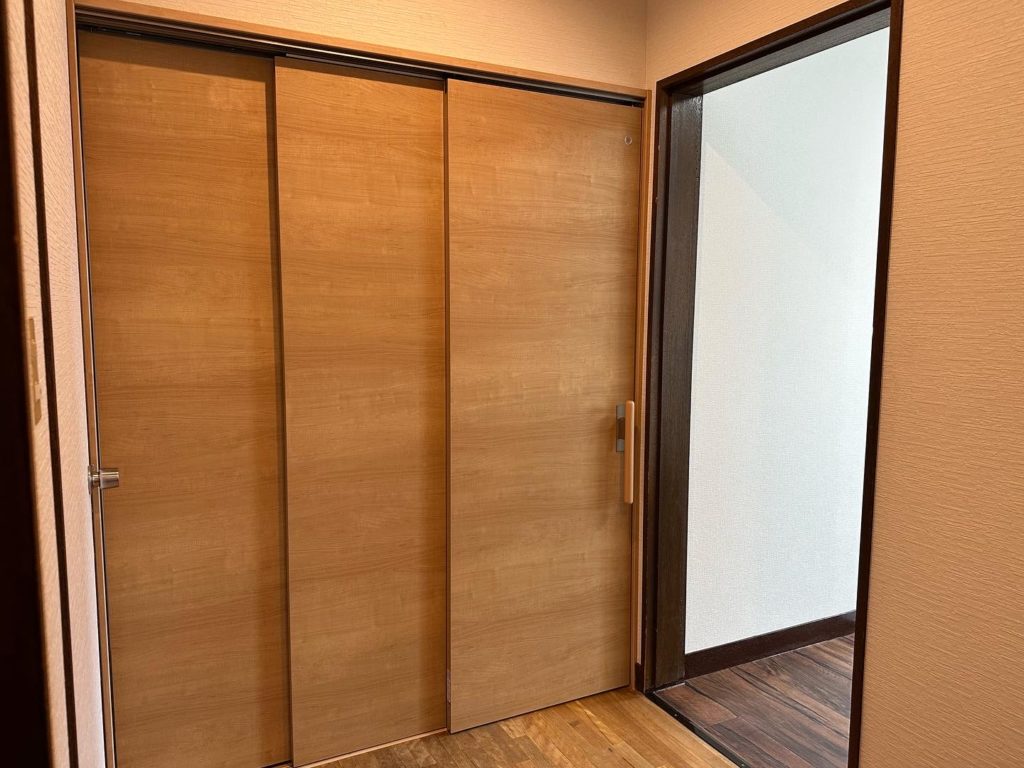 施工内容:3連引き戸建具 壁階解体造作 洗面化粧台 エアコン取付 照明交換 クロス・CF貼